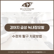이렇게 갑자기 녹내장이 발생하게 되면 통증이 상당히 심하기 때문에 눈을 뜨지 못하고 눈물을 많이 흘리거나 밥을 자주 먹는 증상이 나타날 수 있고 종종 구토를 하는 경우도 있습니다.